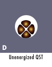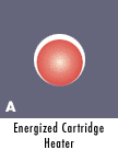 Conductive heat transfer by cartridge heaters in oversized holes is restricted to where surface contact exists. Sheath expansion is limited (A). Expansion of the SST Split Sheath Heaters when energized is significant, improving heat transfer (B). Diameters are nominally .005" undersized for maximum expansion in standard applications with a fit of .005" - .007". Where an inconsistently drilled or worn hole creates larger fit considerations, the SST Split Sheath Heater offers exceptional performance (C). The QST, or Quad's effect is similar to the SST with the exception that there are four separate sections (D). Conductive heat transfer is superior to any available insertion heater (E). |